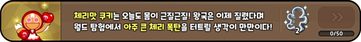 - '월드탐험' 중 체리맛 쿠키의 스킬 50회 발동